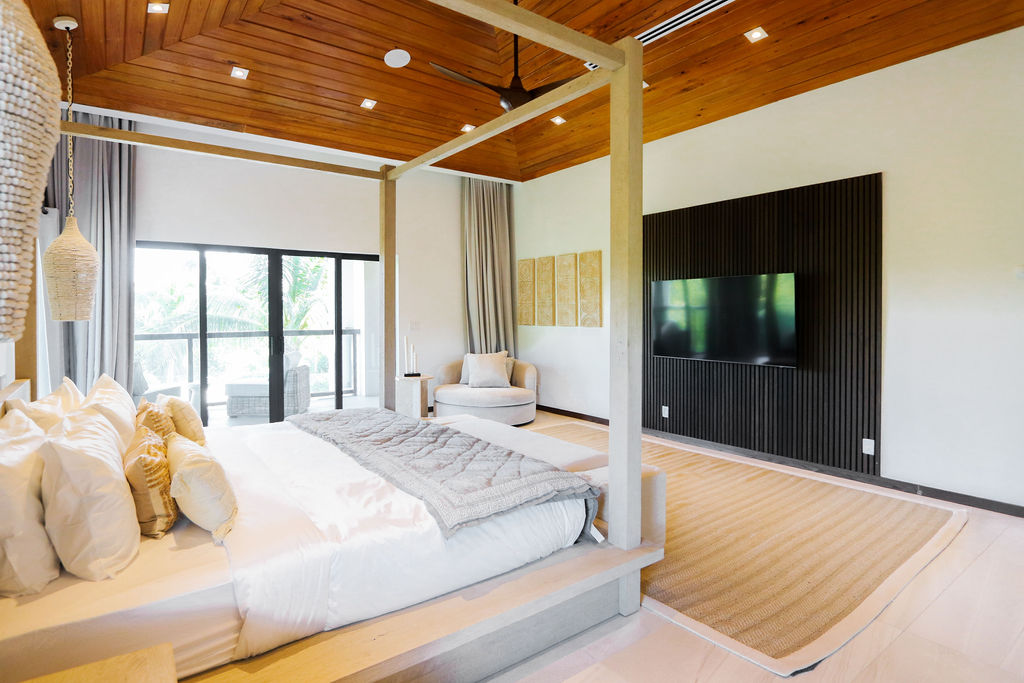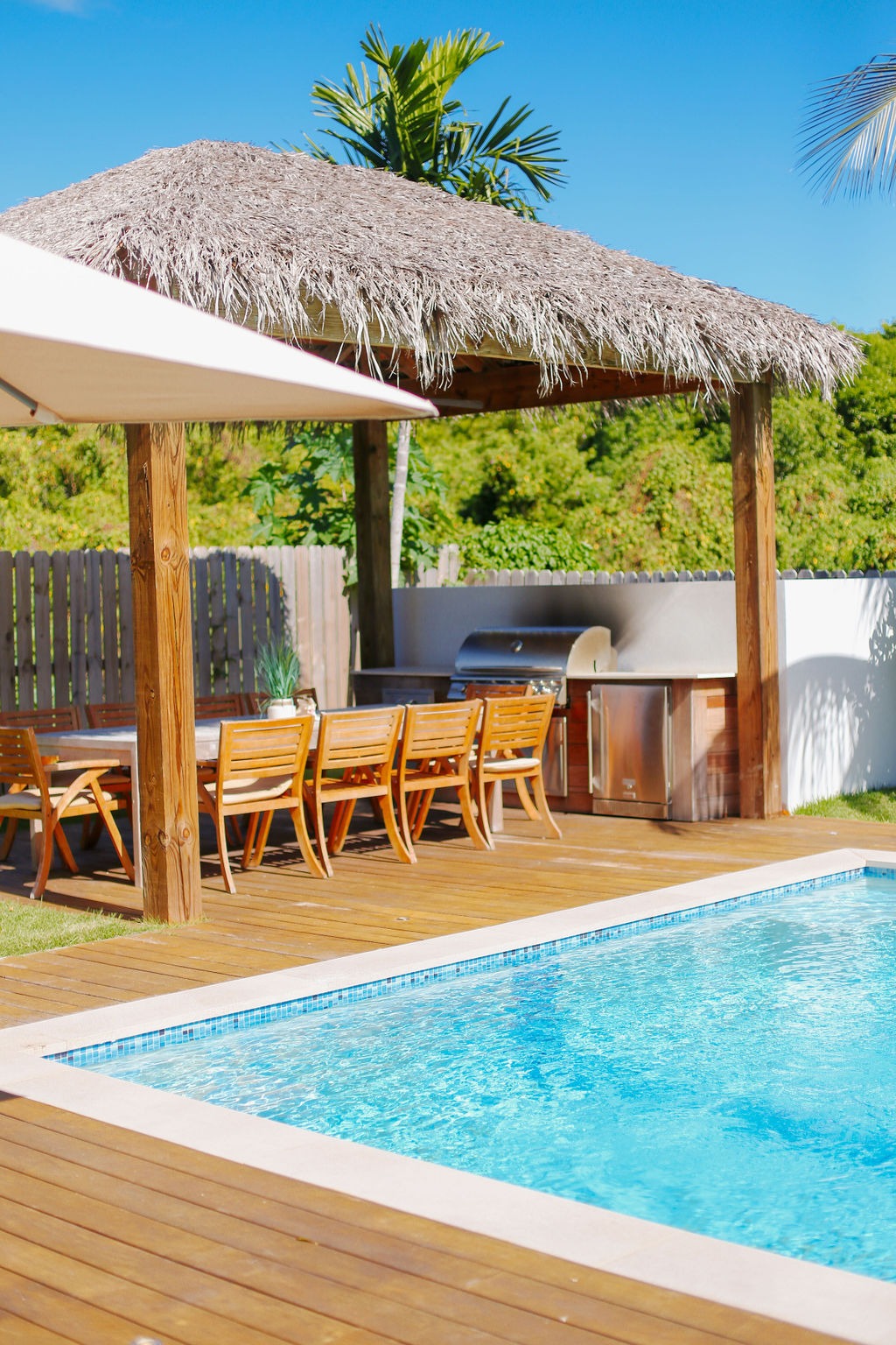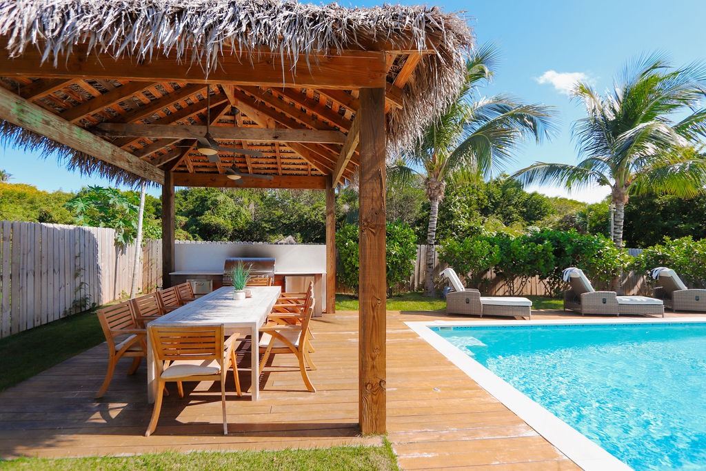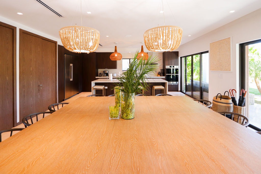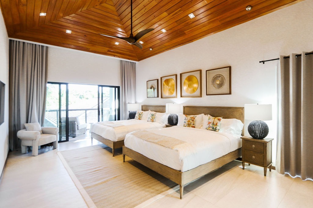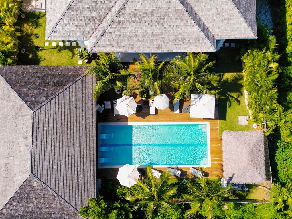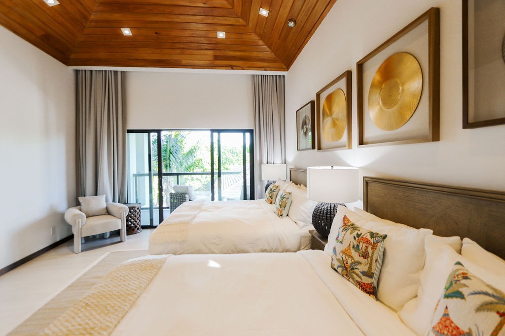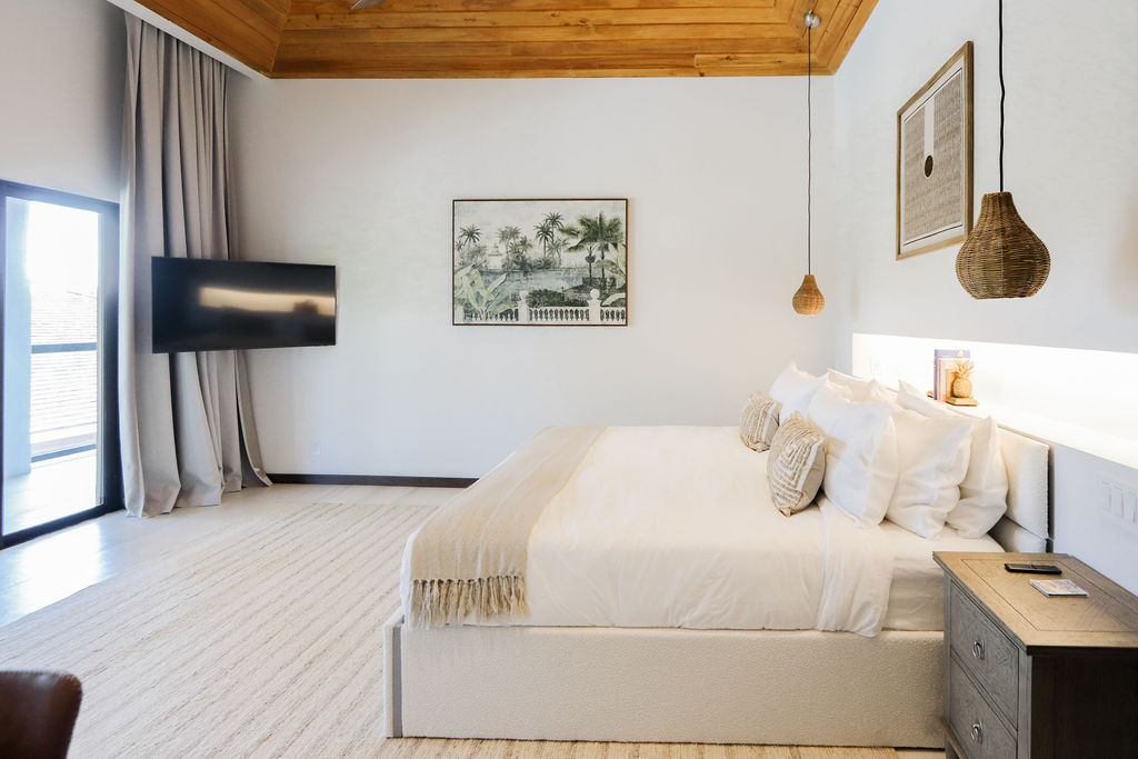 Bali House sleeps 12 comfortably, has a main house with two floors, a separate casita with a gym, and a full size swimming pool.